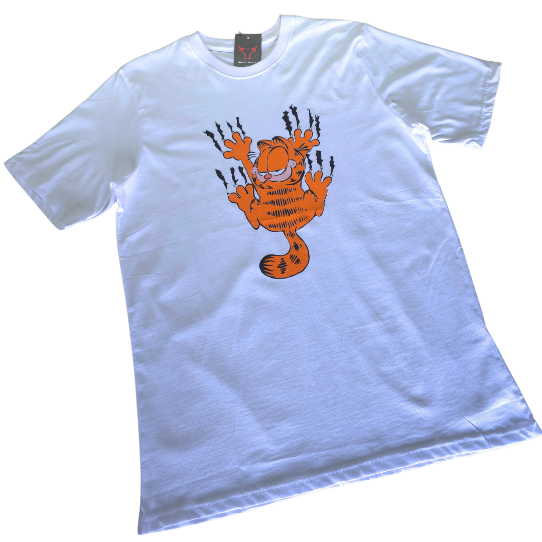 Kıbrıs Tişörtler Garfield Baskı Beyaz Cotton Tişört